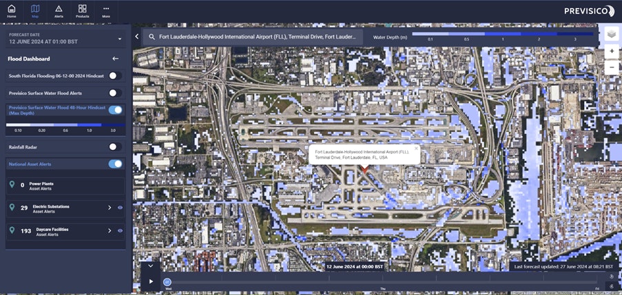 Airport: At Fort Lauderdale/Hollywood International, several taxiways were closed due to flooding. More than 50 commercial flights were delayed and cancelled. Previsico’s hindcasting shows that the airport was widely affected by flooding, both internally and in the surrounding areas where access roads were affected.