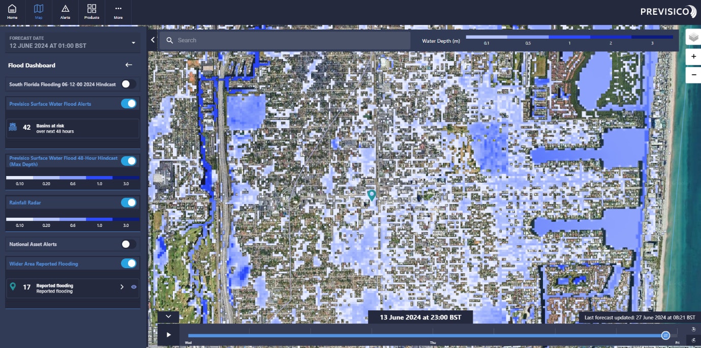 How Previsico's hindcast data predicted the extend of South Florida's flooding after Hurricane Darren