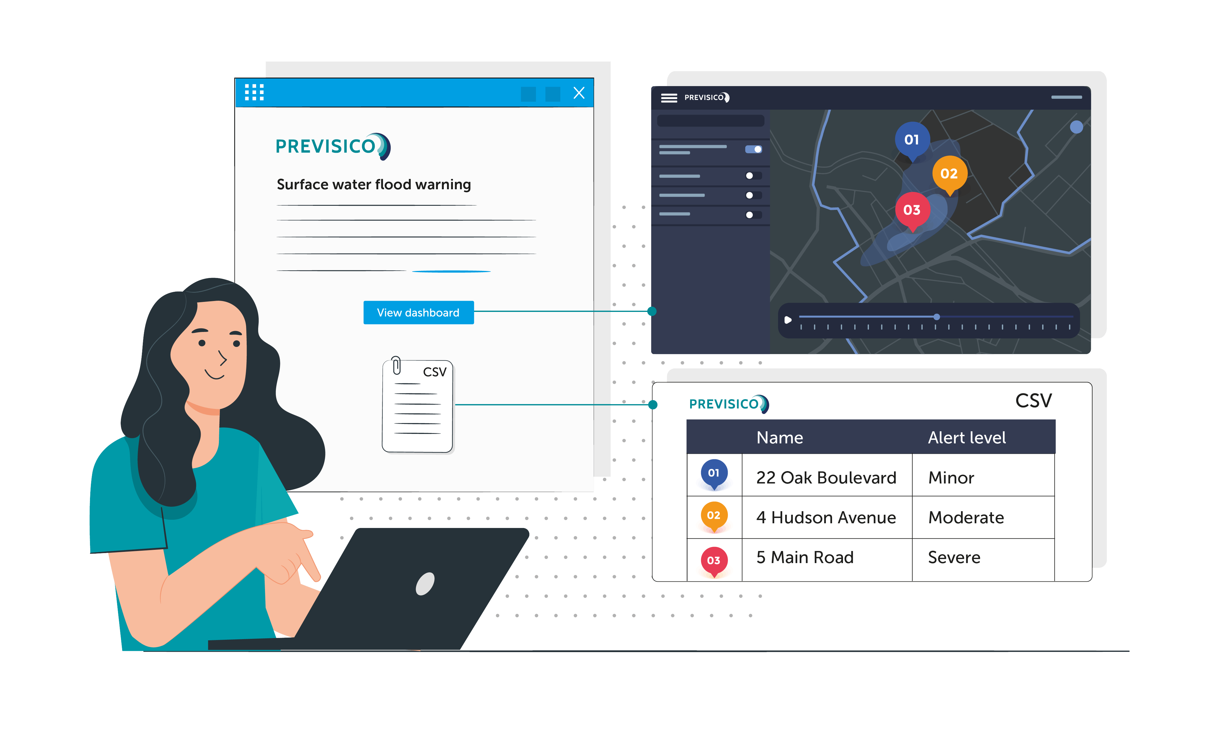 Our flood intel platform allows you to view existing government alerts alongside Previsico’s surface water flood forecasts for an all – in-one flood alerting platform.